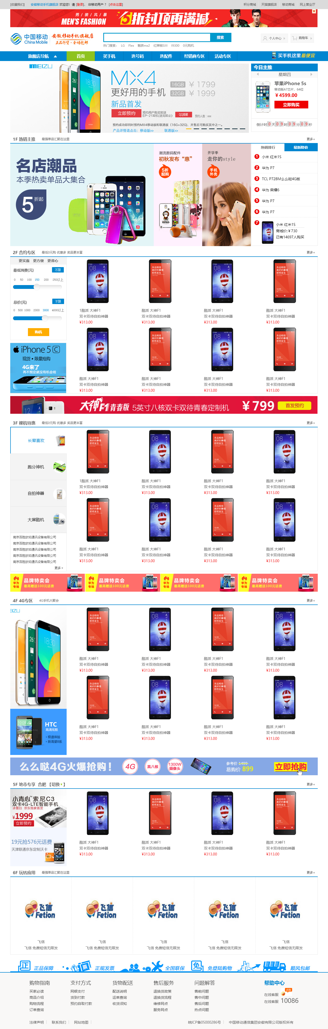 蓝色的B2C在线手机商城整站模板html源码