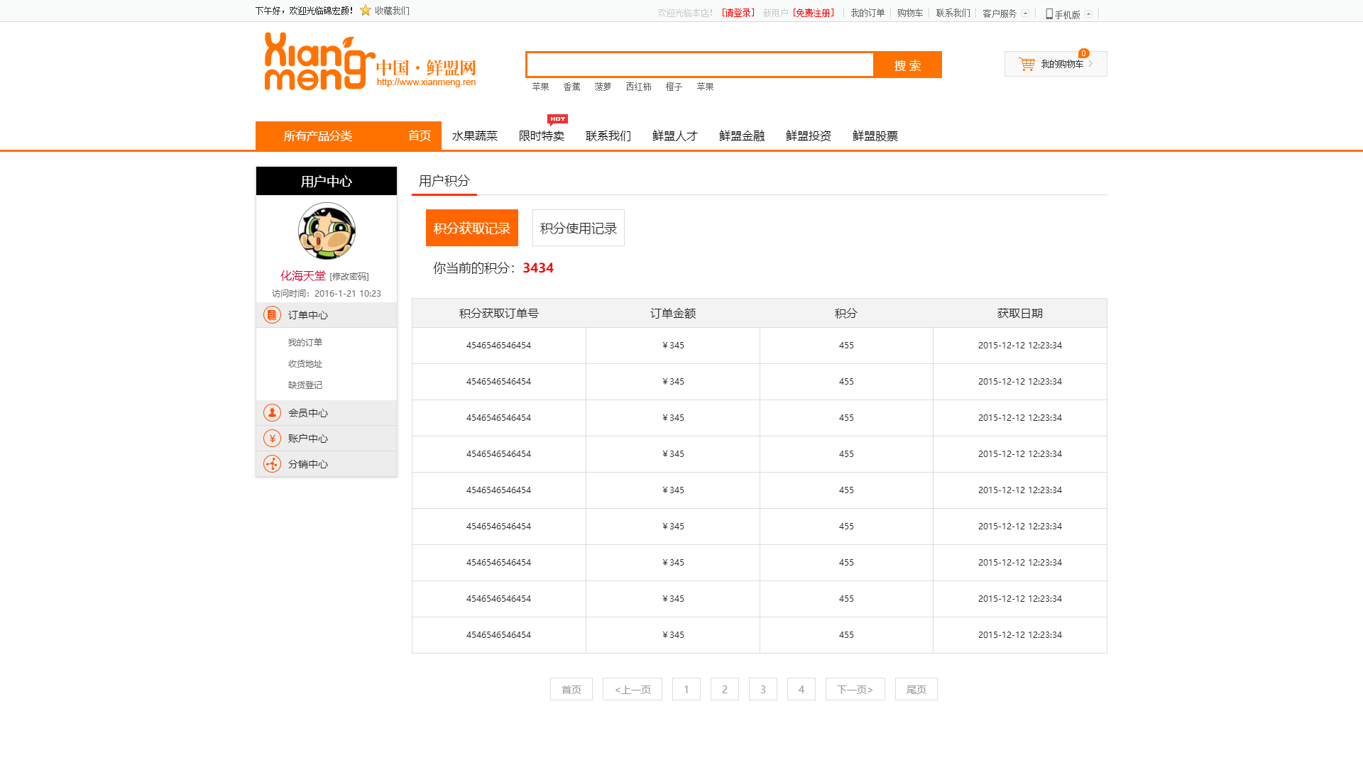 水果在线商城响应式橙色网站商城模板