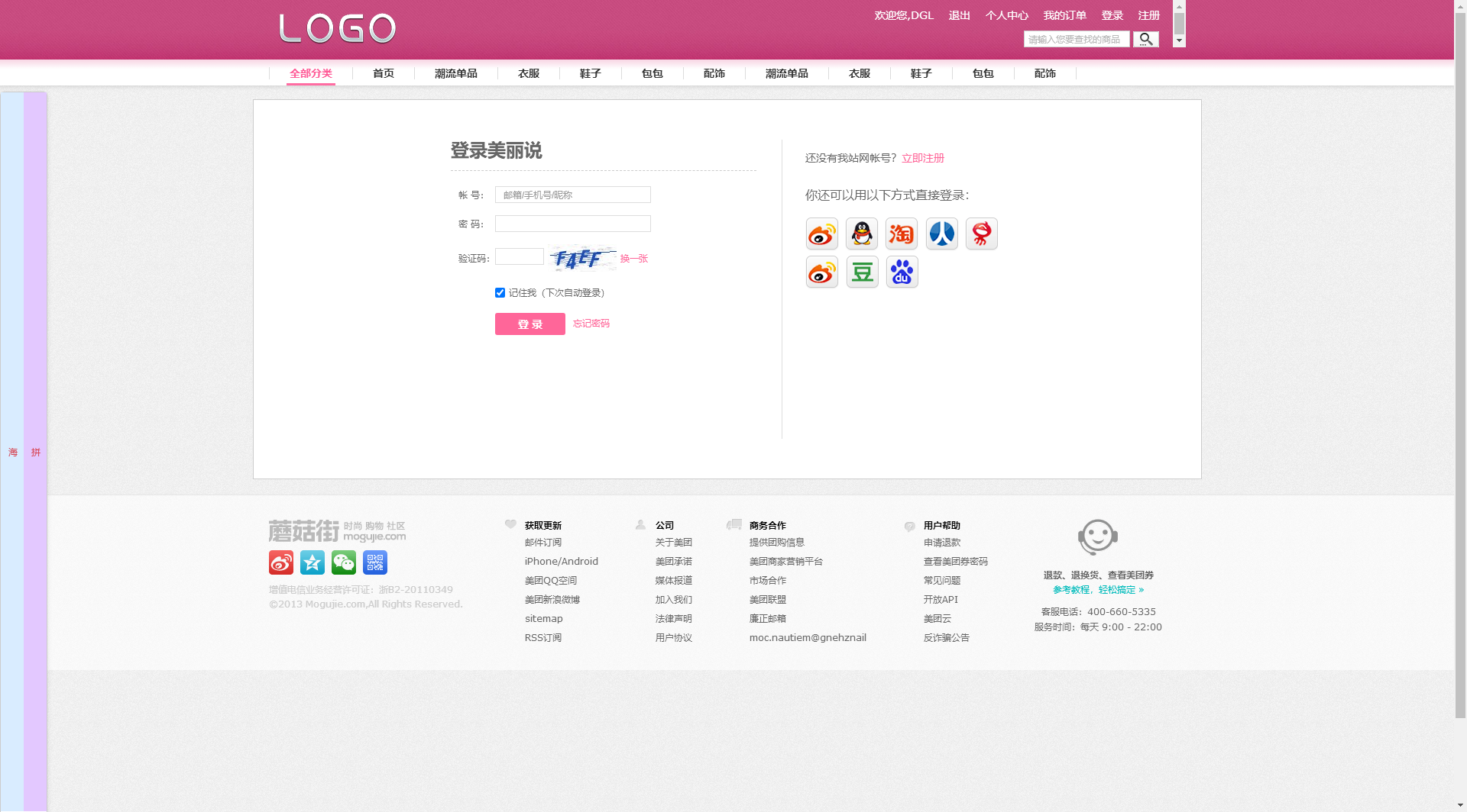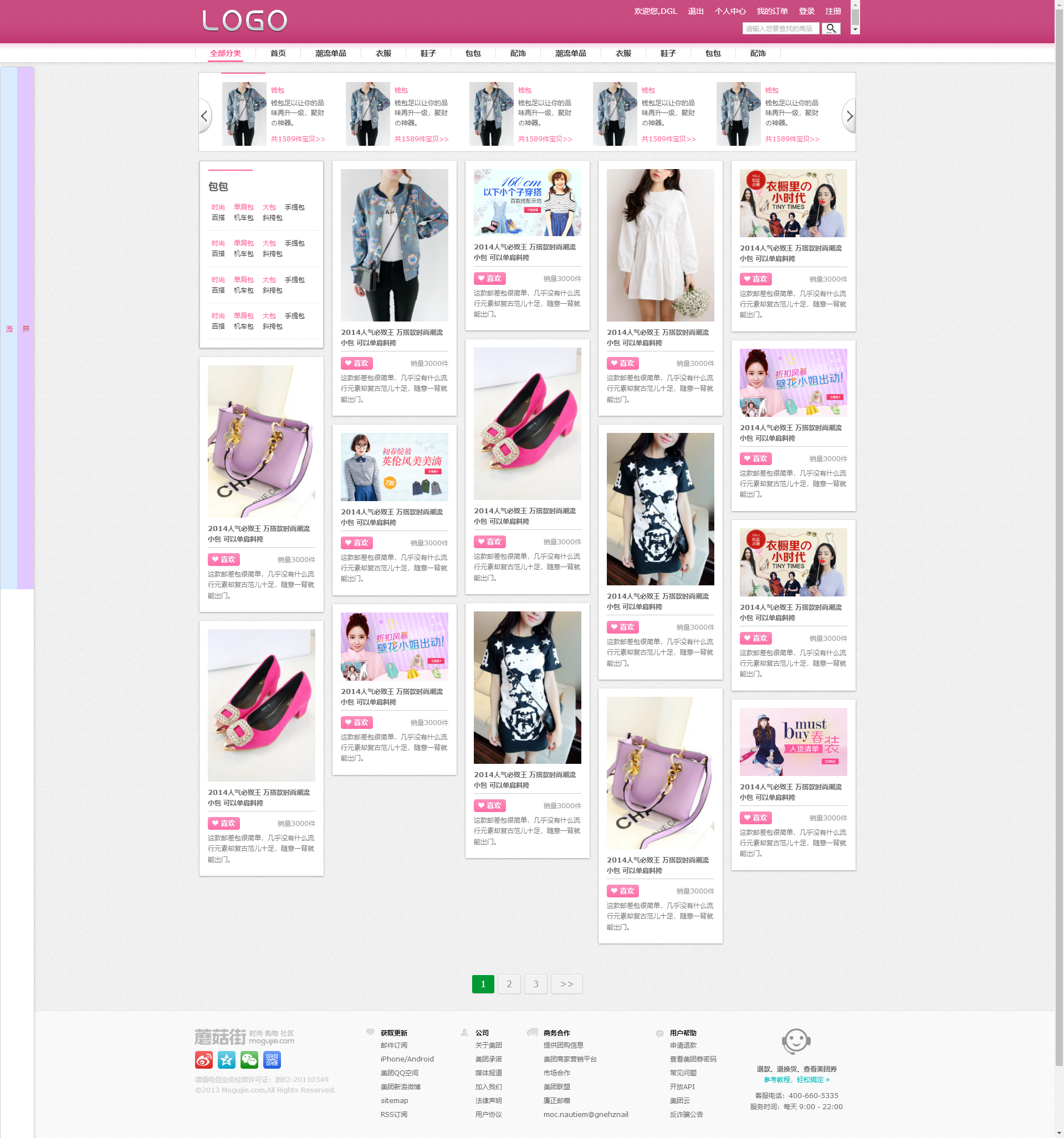 粉色的服装购物商城模板