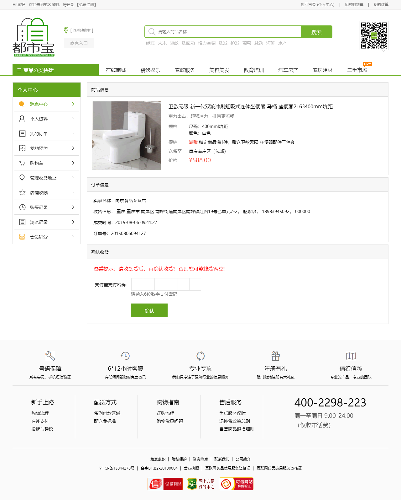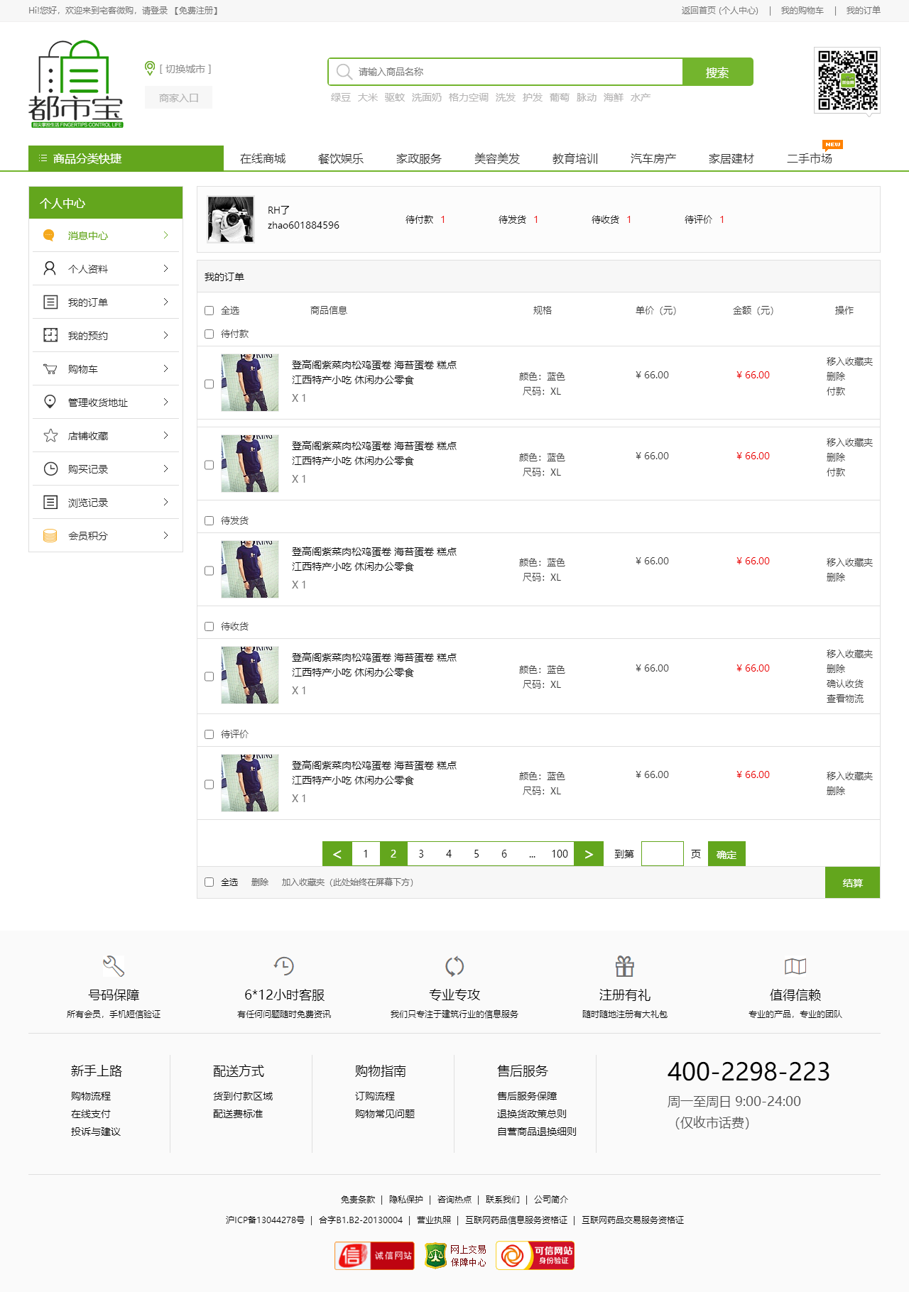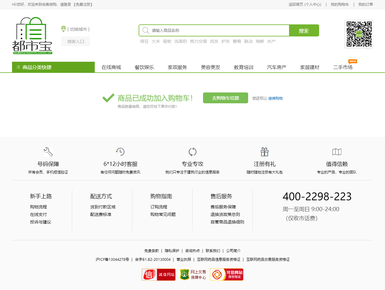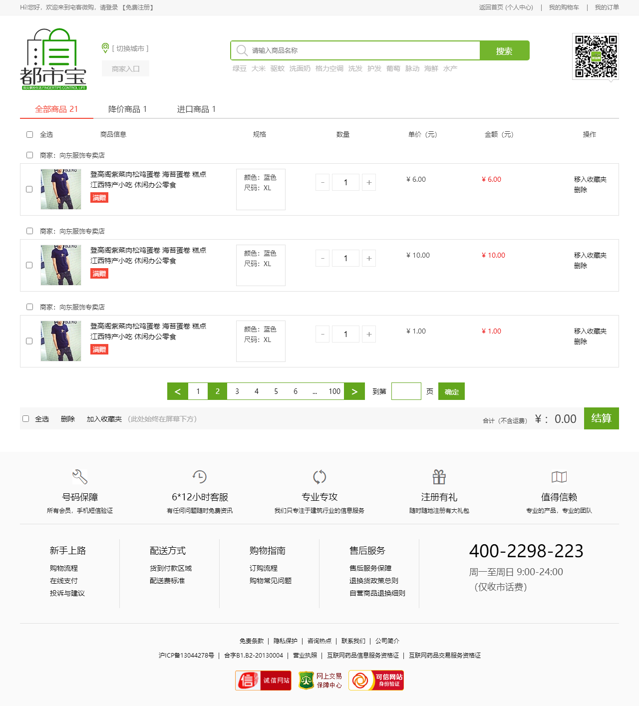 绿色的生活服务平台购物商城模板html源码(购物车数字可变,金额不变)