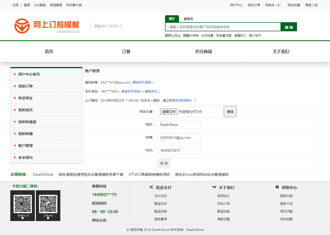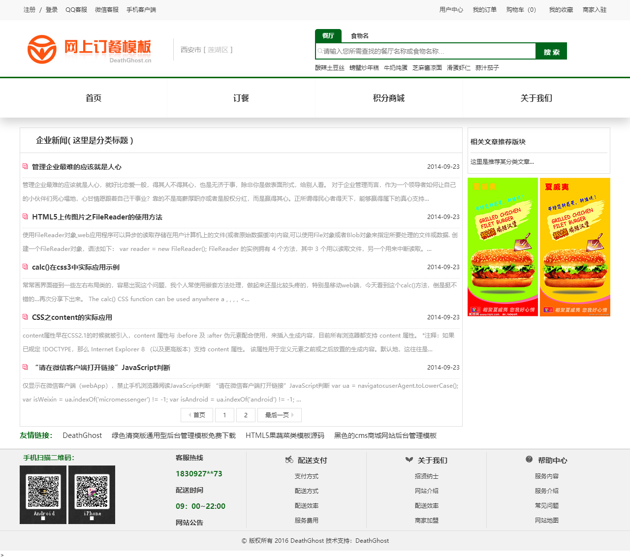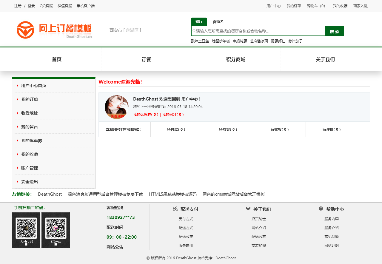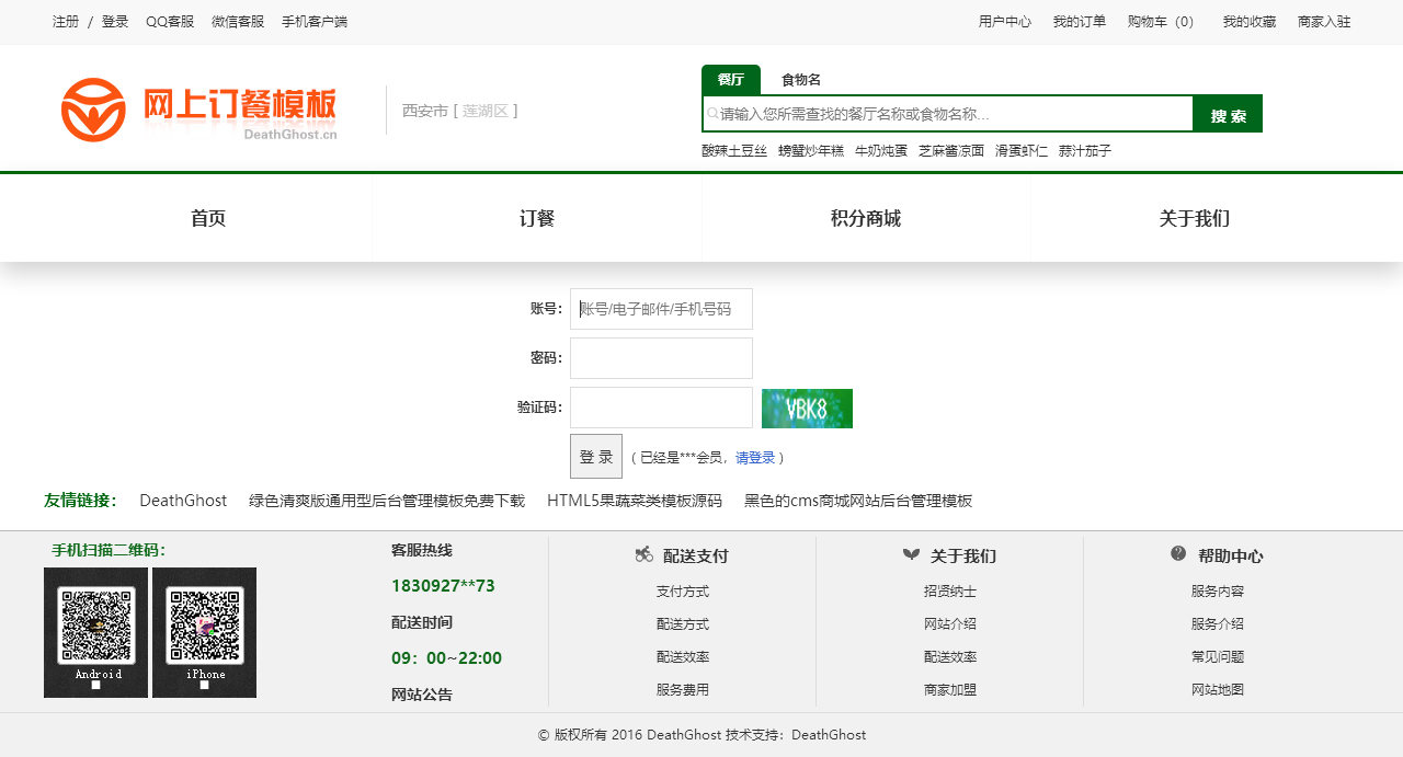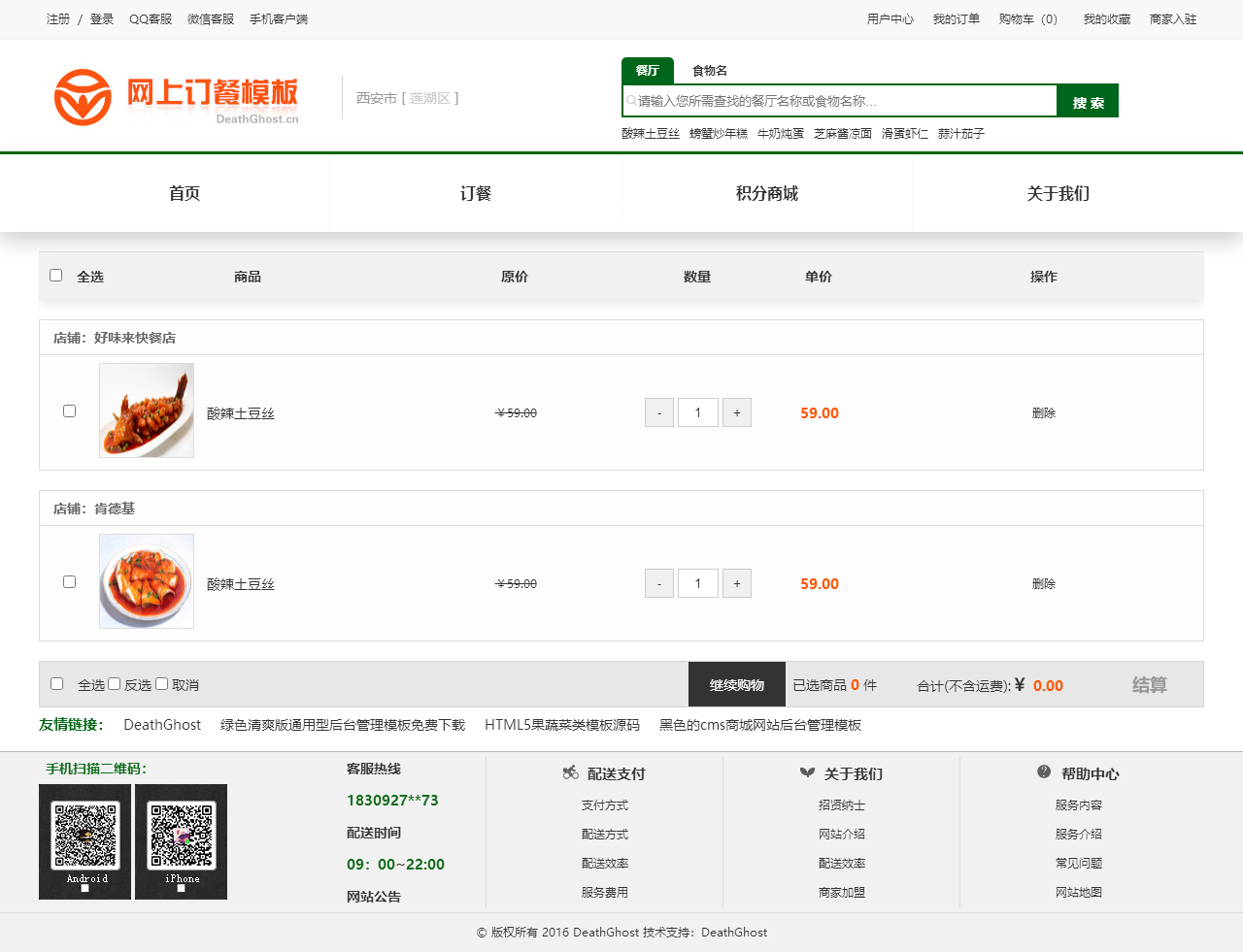 绿色的网上订餐系统模板html源码(购物车数字可变,金额不变)